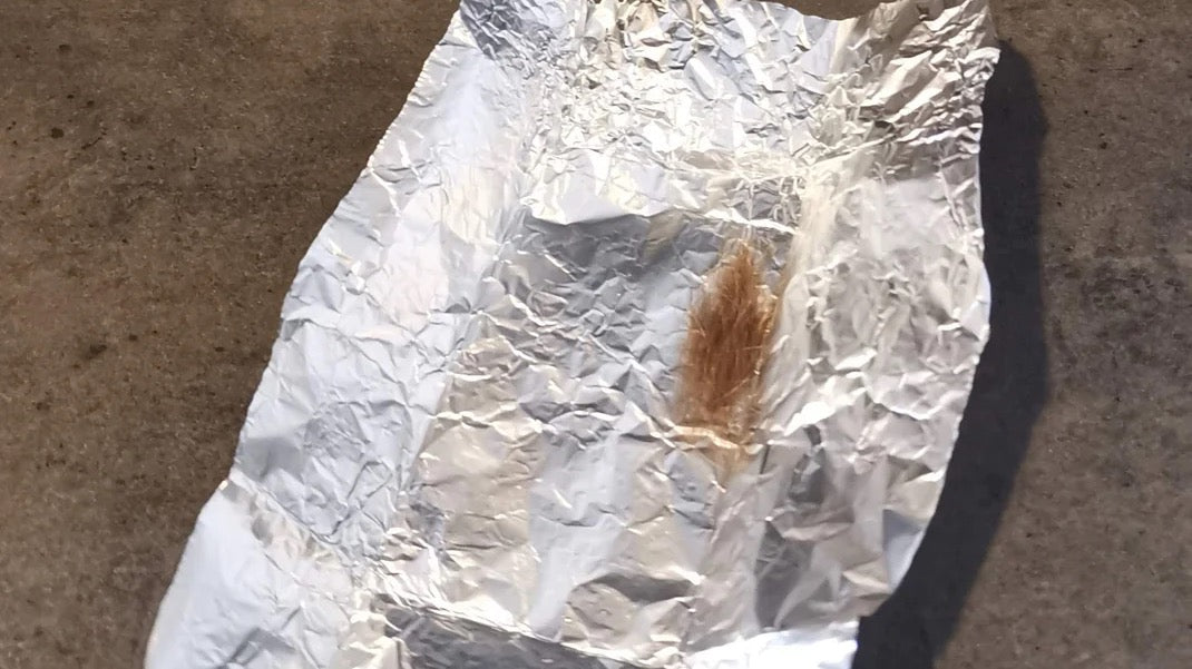 Lege kurze Haare möglichst gebündelt auf ein Stück Alufolie oder Papier.