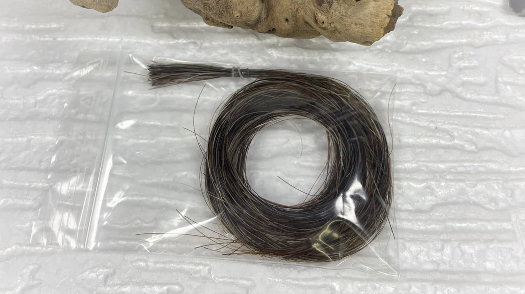 Lange Haare (Pferdeschweif/Mähne) fixierst du bitte mit einem Gummi. Anschließend legst du sie vorsichtig zu einem Kreis damit nichts zerknickt und schiebst sie in einen Briefumschlag. Bitte nicht flechten!